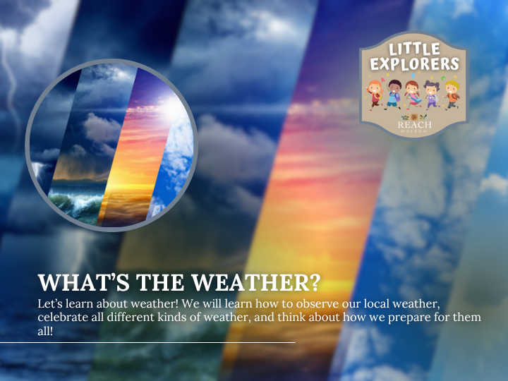 Let’s learn about weather! We will learn how to observe our local weather, celebrate all different kinds of weather, and think about how we prepare for them all!